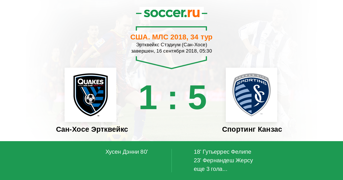 США. МЛС 25.09.2016 Сан-Хосе Эртквейкс Логотип футбольный клуб Сан-Хосе Эртквейкс 1:2 Логотип футбольный клуб Спортинг Канзас (Канзас-Сити) Спортинг Канзас