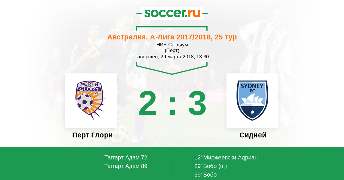 Австралия. А-Лига 02.03.2013 Перт Глори Логотип футбольный клуб Перт Глори 2:1 Логотип футбольный клуб Сидней Сидней