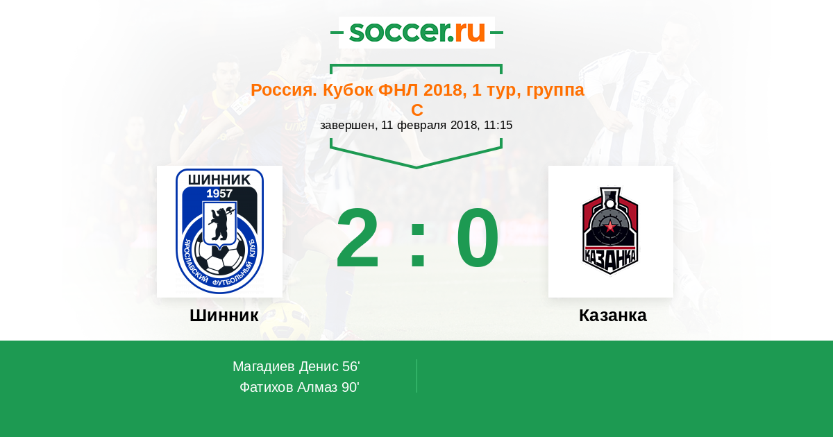 Россия. Вторая лига. Группа 2 30.09.2021 Шинник Логотип футбольный клуб Шинник (Ярославль) 1:0 Логотип футбольный клуб Казанка (Москва) Казанка