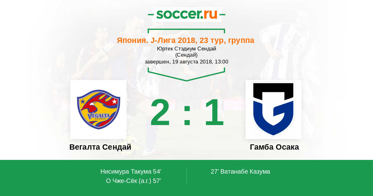 Япония. J-Лига 1 09.07.2016 Гамба Осака Логотип футбольный клуб Гамба Осака 3:1 Логотип футбольный клуб Вегалта Сендай Вегалта Сендай