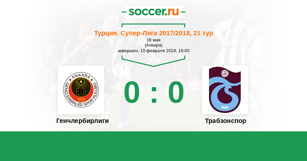 Турция. Суперлига 29.04.2017 Трабзонспор Логотип футбольный клуб Трабзонспор 0:0 Логотип футбольный клуб Генчлербирлиги (Анкара) Генчлербирлиги