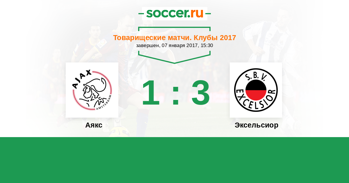 Нидерланды. Эредивизи 19.03.2017 Эксельсиор Логотип футбольный клуб Эксельсиор (Роттердам) 1:1 Логотип футбольный клуб Аякс (Амстердам) Аякс