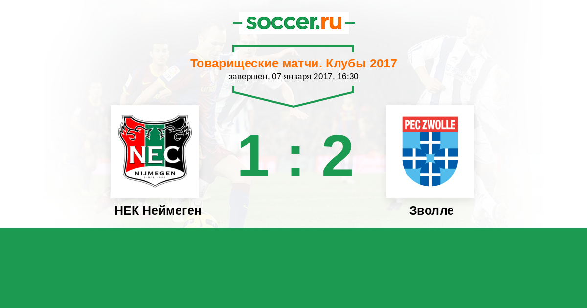 Товарищеские матчи. Клубы 08.01.2016 НЕК Неймеген Логотип футбольный клуб НЕК Неймеген 3:1 Логотип футбольный клуб Зволле Зволле