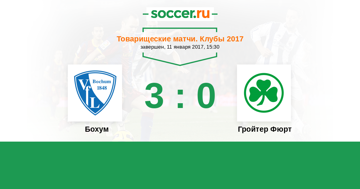 Германия. Бундеслига 2 18.11.2017 Бохум Логотип футбольный клуб Бохум 1:1 Логотип футбольный клуб Гройтер Фюрт Гройтер Фюрт