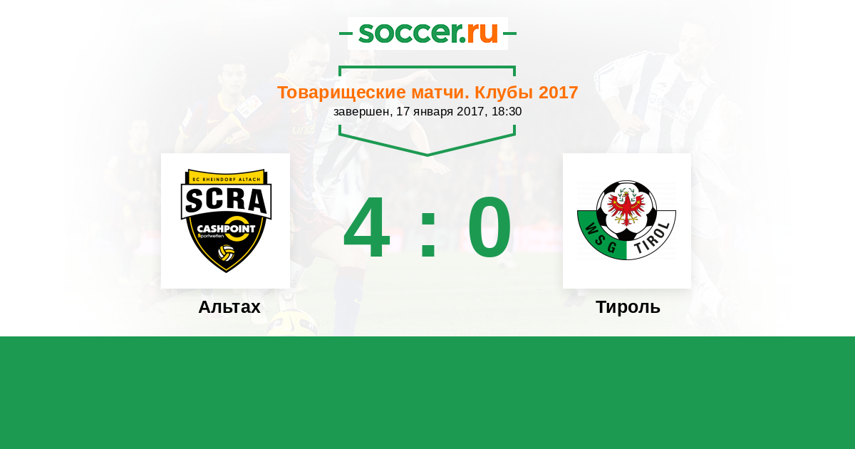 Товарищеские матчи. Клубы 13.01.2018 Альтах Логотип футбольный клуб Альтах 3:1 Логотип футбольный клуб Тироль (Ваттенс) Тироль