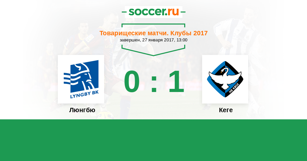 Товарищеские матчи. Клубы 26.01.2018 Люнгбю Логотип футбольный клуб Люнгбю (Конгес Люнгбю) 0:0 Логотип футбольный клуб Кеге Кеге
