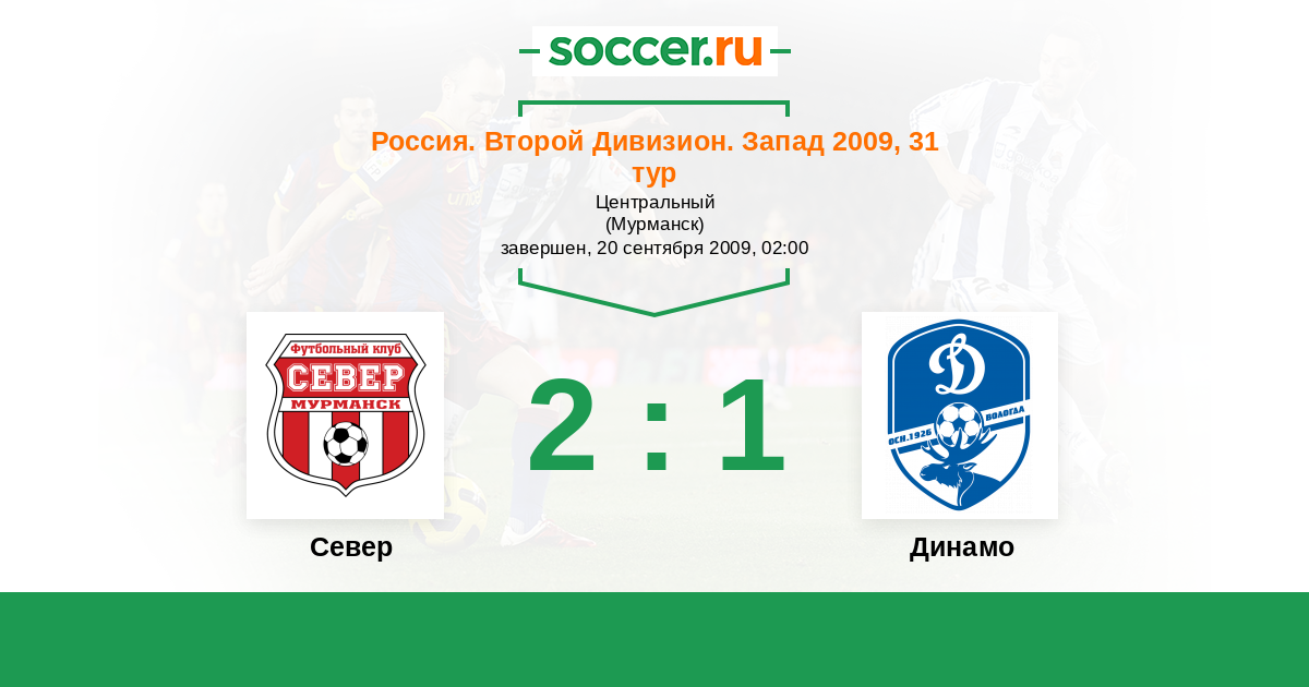 Россия. Вторая лига. Группа 2 08.06.2009 Динамо Вологда Логотип футбольный клуб Динамо Вологда 2:3 Логотип футбольный клуб Север (Мурманск) Север