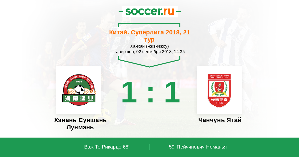 Китай. Суперлига 04.08.2012 Чанчунь Ятай Логотип футбольный клуб Чанчунь Ятай 2:2 Логотип футбольный клуб Хэнань Суншань Лунмэнь (Чжэнчжоу) Хэнань Суншань Лунмэнь
