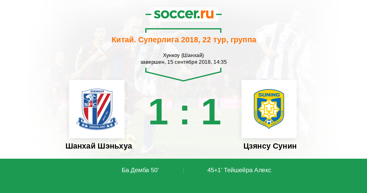 Китай. Суперлига 18.10.2014 Цзянсу Сунин Логотип футбольный клуб Цзянсу Сунин 1:1 Логотип футбольный клуб Шанхай Шэньхуа Шанхай Шэньхуа