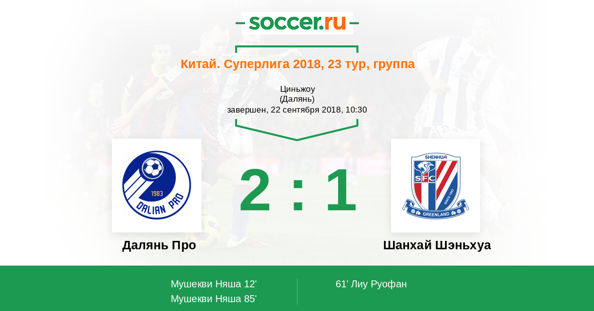 Китай. Суперлига 29.09.2022 Далянь Про Логотип футбольный клуб Далянь Про 1:2 Логотип футбольный клуб Шанхай Шэньхуа Шанхай Шэньхуа