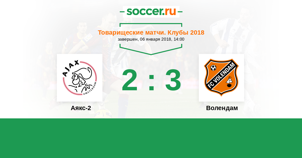 Нидерланды. Первый дивизион 22.12.2017 Аякс-2 Логотип футбольный клуб Аякс-2 (Амстердам) 7:0 Логотип футбольный клуб Волендам Волендам
