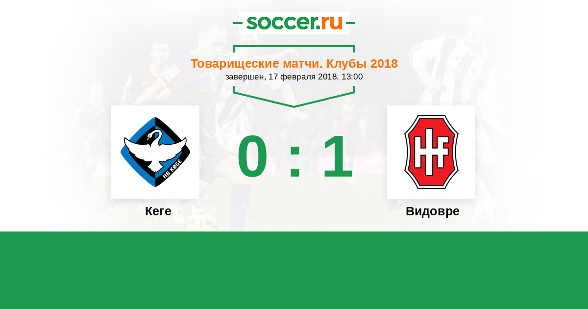Дания. Первый дивизион 26.08.2018 Кеге Логотип футбольный клуб Кеге 4:3 Логотип футбольный клуб Видовре Видовре