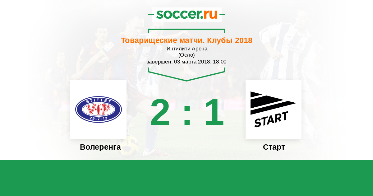 Норвегия. Высшая лига 14.04.2018 Старт Логотип футбольный клуб Старт (Кристиансанд) 1:6 Логотип футбольный клуб Волеренга (Осло) Волеренга