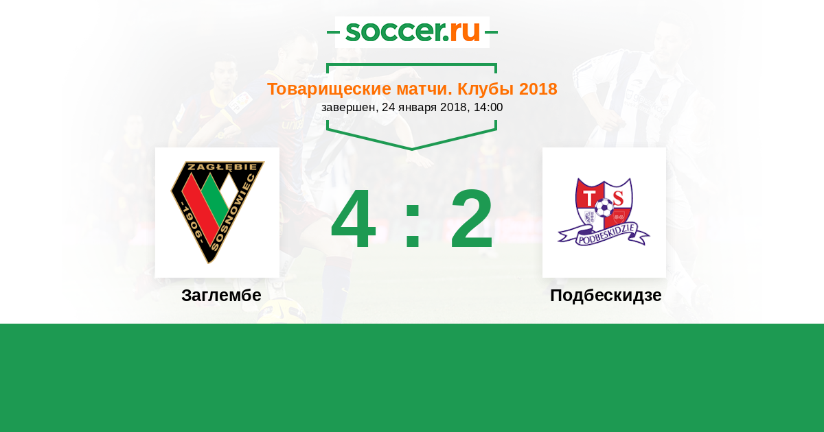 Польша. Первый дивизион 16.09.2016 Подбескидзе Логотип футбольный клуб Подбескидзе (Бельско-Бяла) 4:5 Логотип футбольный клуб Заглембе (Сосновец) Заглембе