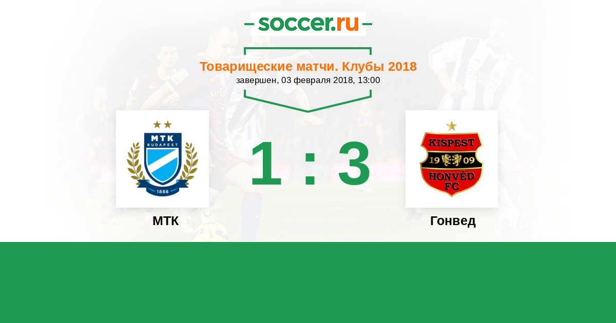 Венгрия. Чемпионат 1 18.02.2017 МТК Логотип футбольный клуб МТК (Будапешт) 1:2 Логотип футбольный клуб Гонвед (Будапешт) Гонвед