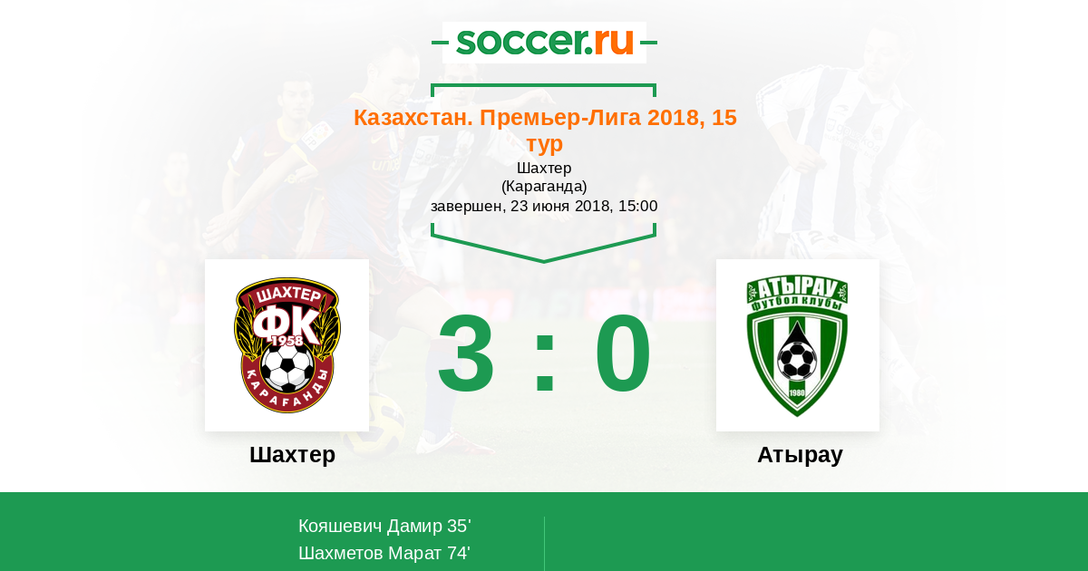 Казахстан. Премьер-лига 17.06.2017 Шахтер Логотип футбольный клуб Шахтер (Караганда) 2:0 Логотип футбольный клуб Атырау Атырау