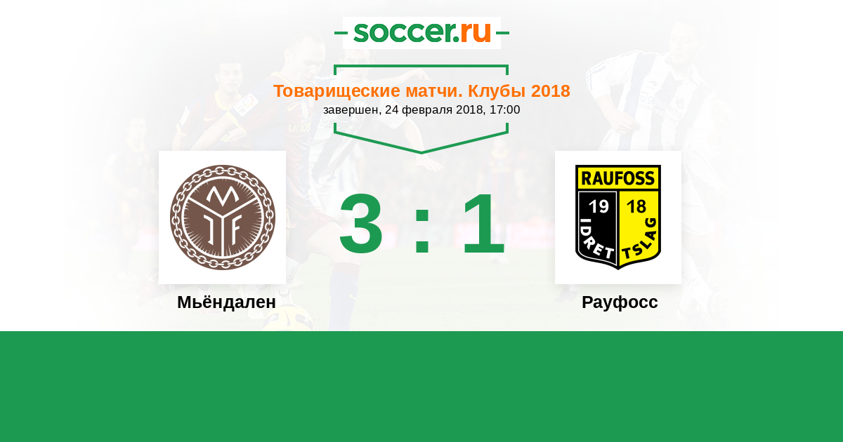 Товарищеские матчи. Клубы 12.01.2019 Рауфосс Логотип футбольный клуб Рауфосс 1:3 Логотип футбольный клуб Мьёндален Мьёндален