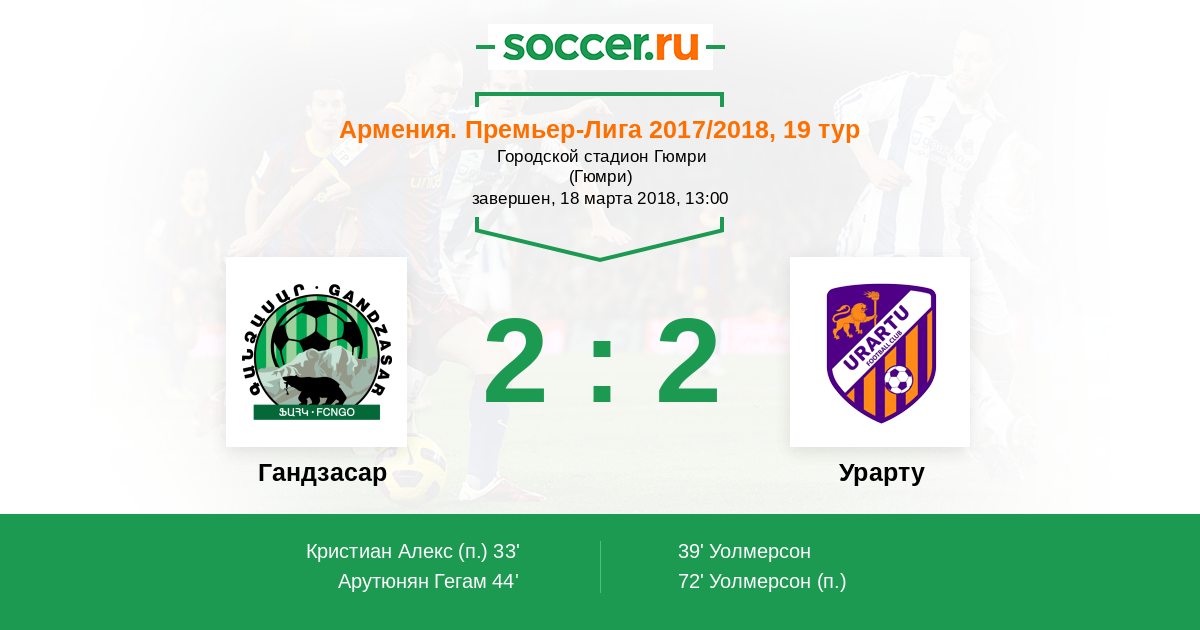 Армения. Премьер-лига 18.05.2019 Урарту Логотип футбольный клуб Урарту (Ереван) 0:5 Логотип футбольный клуб Гандзасар (Капан) Гандзасар