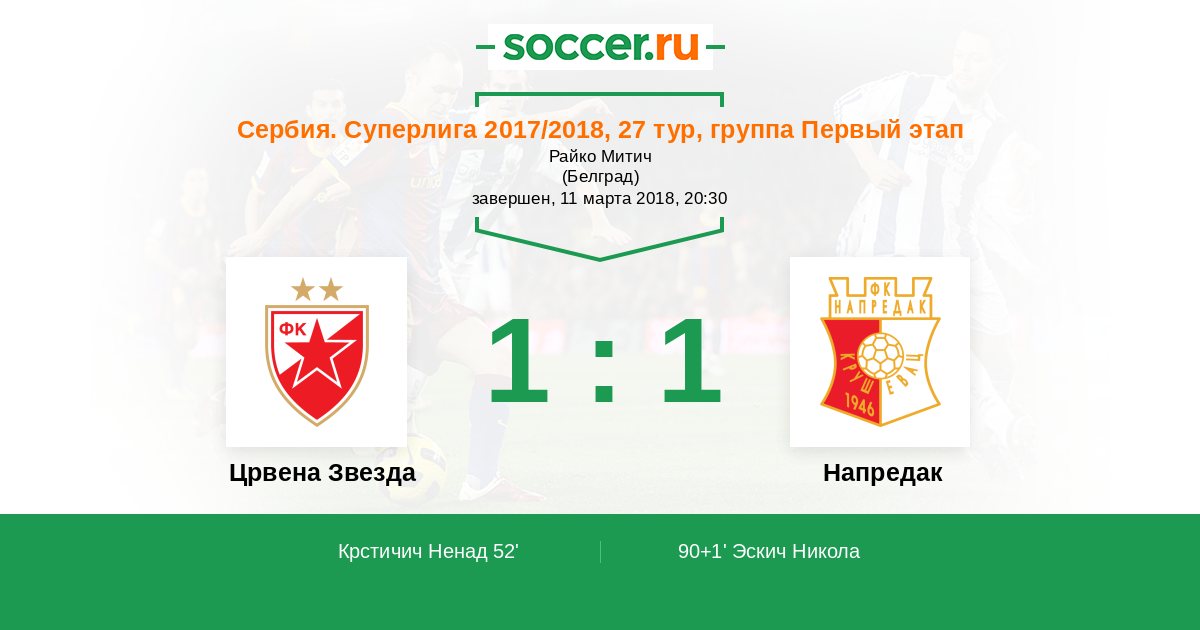 Сербия. Суперлига 21.03.2015 Црвена Звезда Логотип футбольный клуб Црвена Звезда (Белград) 1:0 Логотип футбольный клуб Напредак (Крушевац) Напредак
