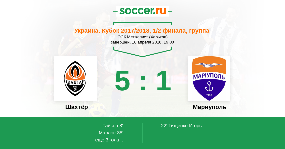 Украина. Премьер-Лига 18.03.2018 Шахтёр Логотип футбольный клуб Шахтёр (Донецк) 3:0 Логотип футбольный клуб Мариуполь Мариуполь