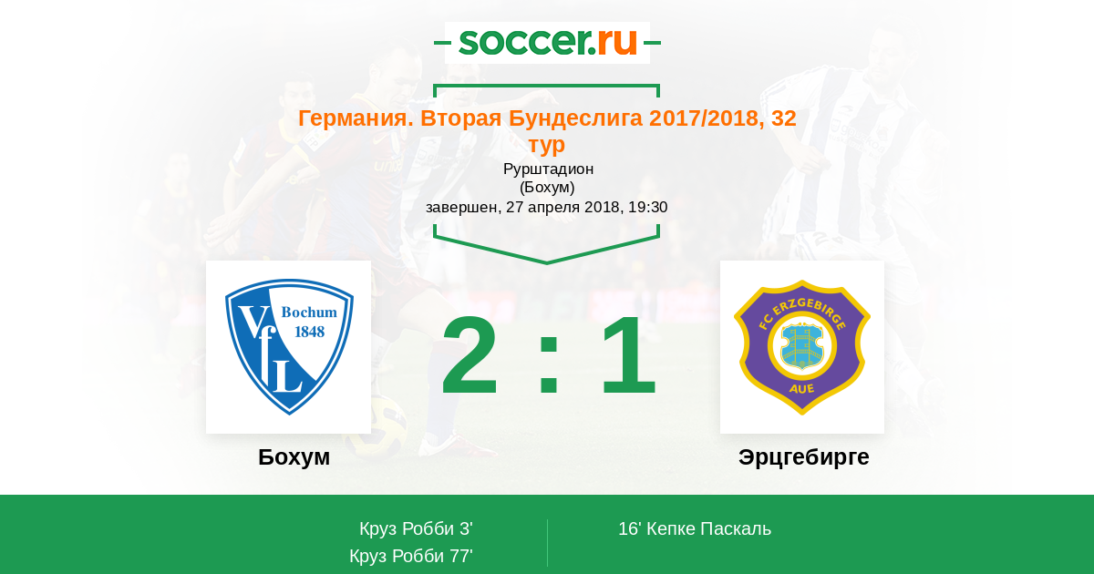 Германия. Бундеслига 2 28.04.2019 Эрцгебирге Логотип футбольный клуб Эрцгебирге (Ауэ) 3:2 Логотип футбольный клуб Бохум Бохум