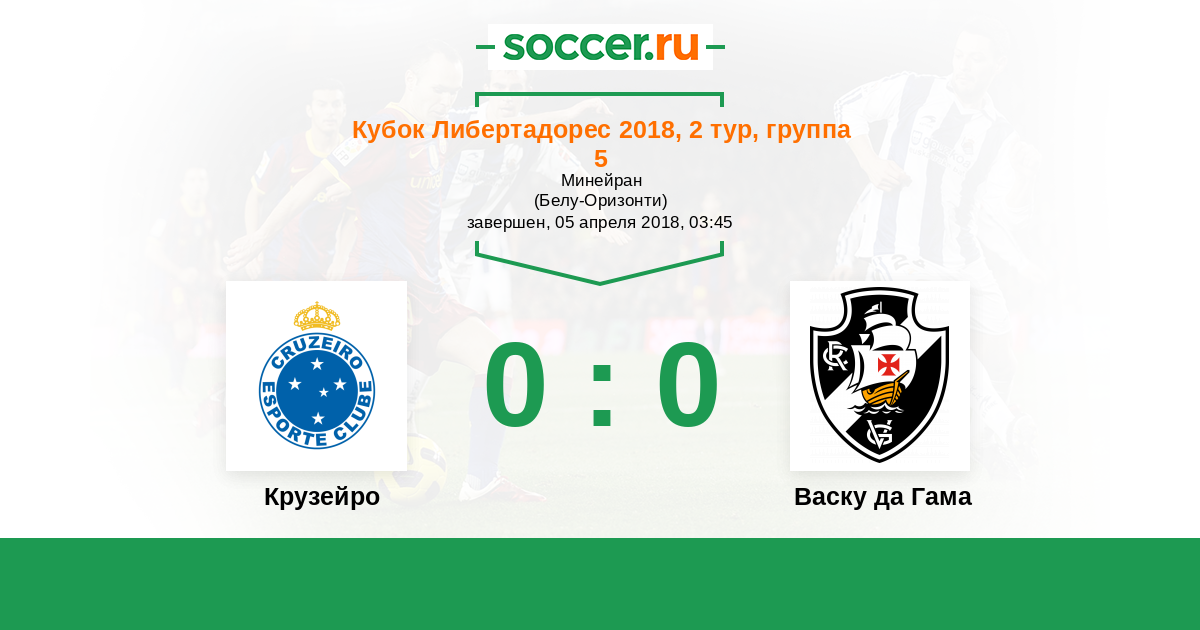 Кубок Либертадорес 03.05.2018 Васку да Гама Логотип футбольный клуб Васку да Гама (Рио-де-Жанейро) 0:4 Логотип футбольный клуб Крузейро (Белу-Оризонти) Крузейро