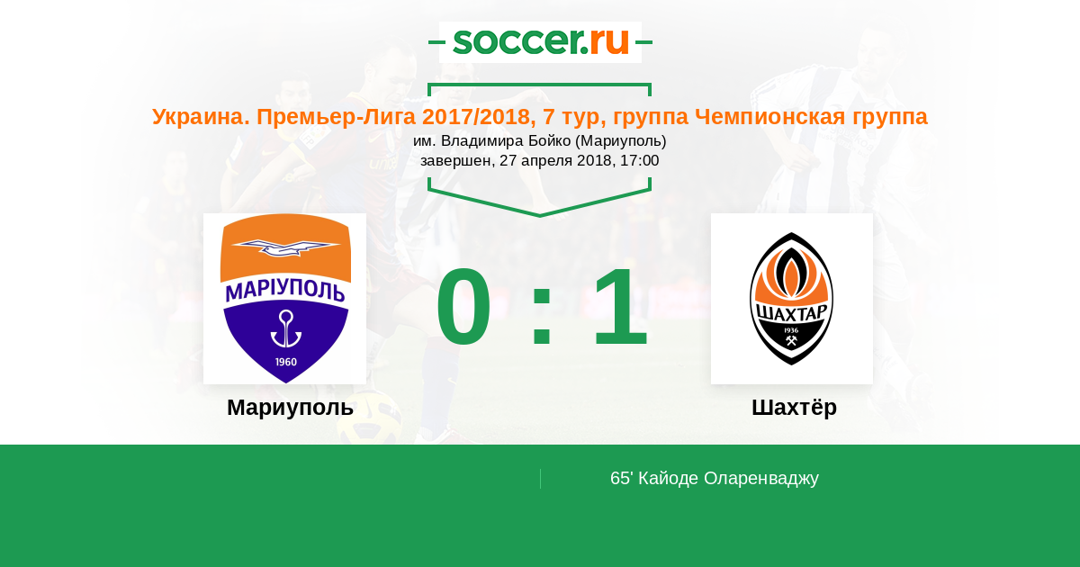 Украина. Премьер-Лига 18.03.2018 Шахтёр Логотип футбольный клуб Шахтёр (Донецк) 3:0 Логотип футбольный клуб Мариуполь Мариуполь