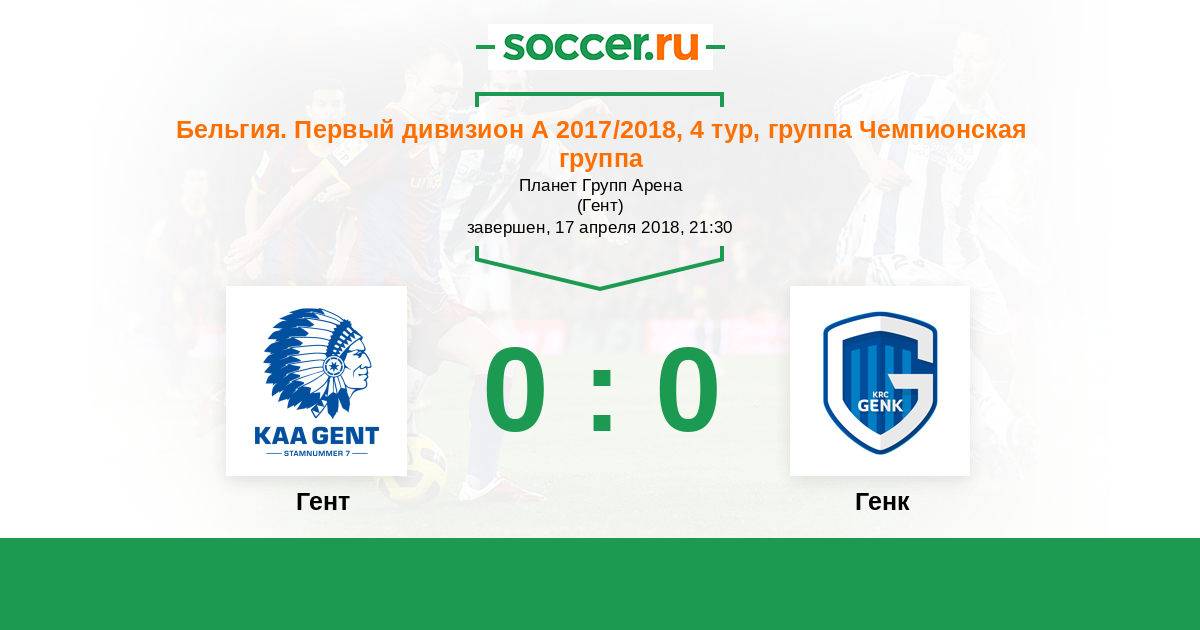 Бельгия. Про-Лига 10.05.2018 Генк Логотип футбольный клуб Генк 1:1 Логотип футбольный клуб Гент Гент