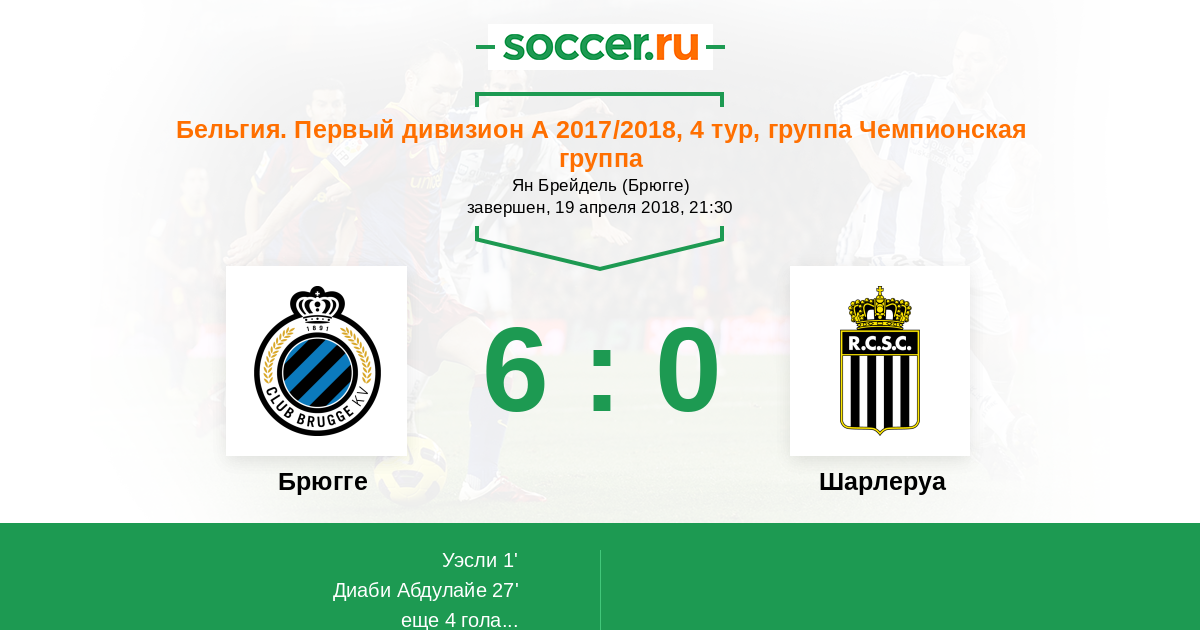 Бельгия. Про-Лига 08.04.2017 Брюгге Логотип футбольный клуб Брюгге 1:1 Логотип футбольный клуб Шарлеруа Шарлеруа