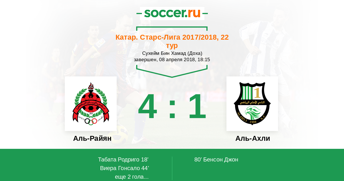 Катар. Старс Лига 20.02.2014 Аль-Райян Логотип футбольный клуб Аль-Райян 4:1 Логотип футбольный клуб Аль-Ахли (Доха) Аль-Ахли