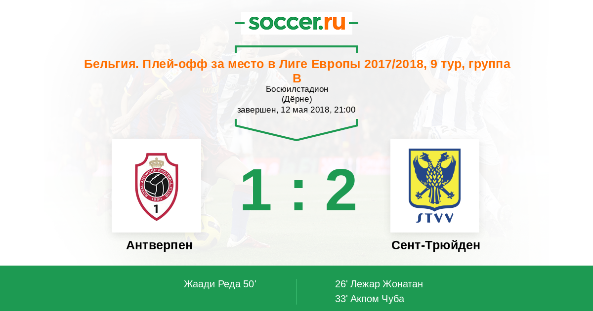 Бельгия. Про-Лига 09.09.2017 Антверпен Логотип футбольный клуб Антверпен 1:1 Логотип футбольный клуб Сент-Трюйден (Синт-Трёйден) Сент-Трюйден