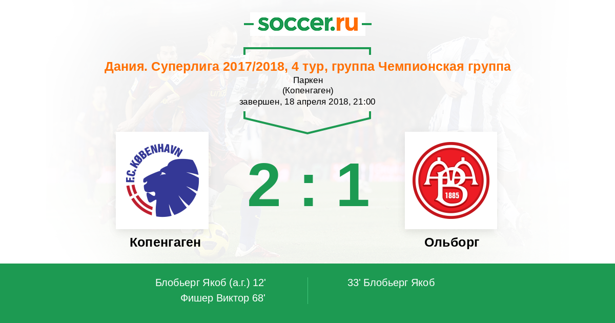 Дания. Суперлига 10.12.2017 Ольборг Логотип футбольный клуб Ольборг 1:1 Логотип футбольный клуб Копенгаген Копенгаген