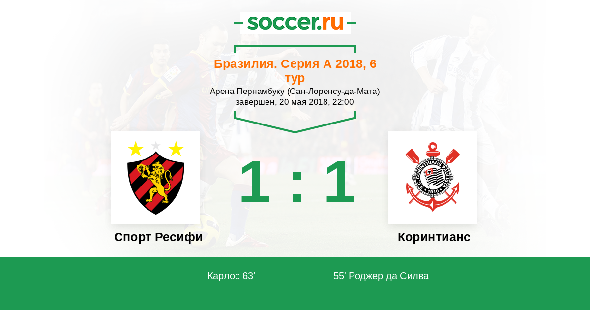 Бразилия. Серия А 17.09.2018 Коринтианс Логотип футбольный клуб Коринтианс (Сан-Паулу) 2:1 Логотип футбольный клуб Спорт Ресифи Спорт Ресифи