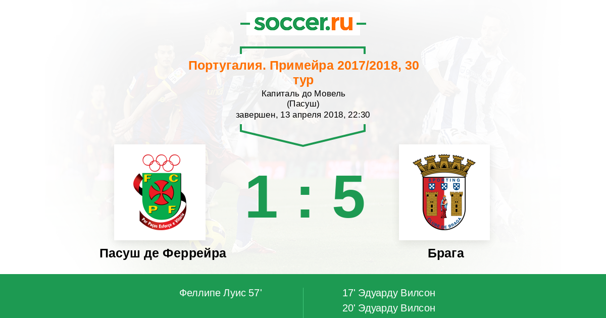 Португалия. Примейра 23.04.2017 Пасуш де Феррейра Логотип футбольный клуб Пасуш де Феррейра 3:1 Логотип футбольный клуб Брага Брага