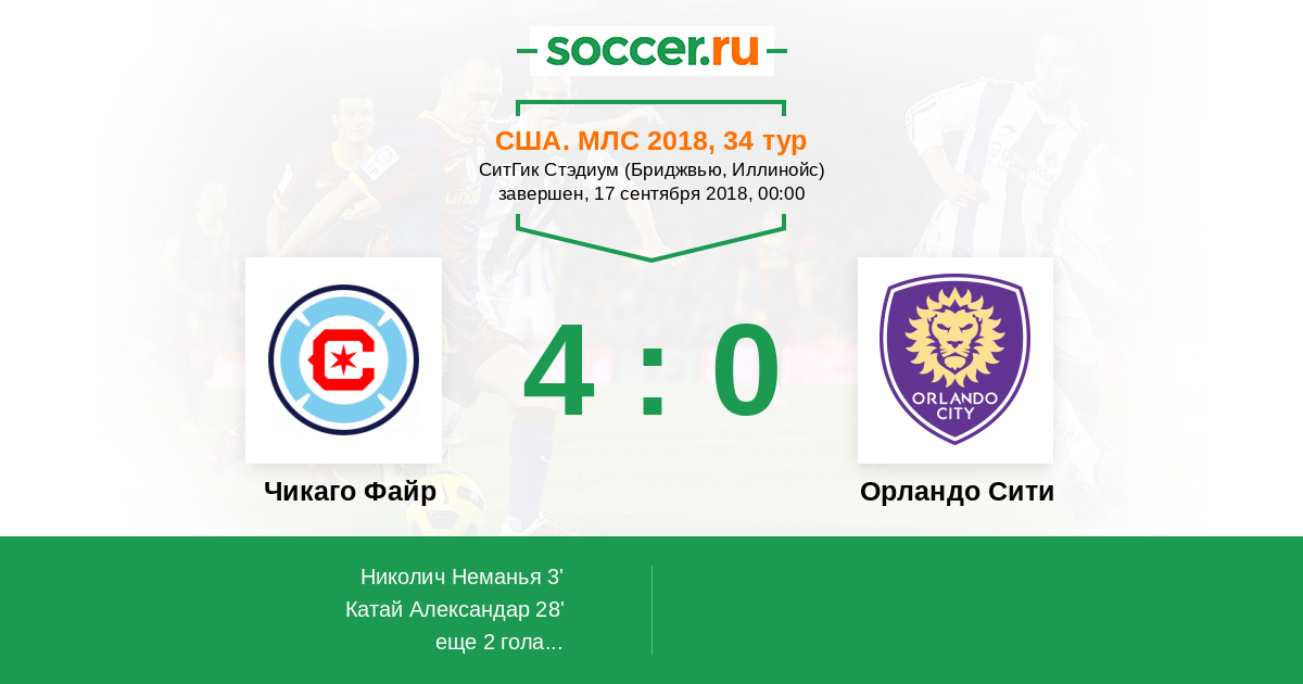 США. МЛС 27.05.2018 Орландо Сити Логотип футбольный клуб Орландо Сити 1:2 Логотип футбольный клуб Чикаго Файр Чикаго Файр