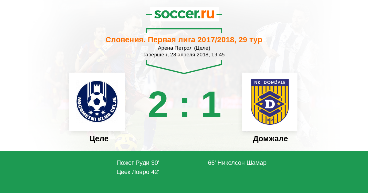 Словения. Первая Лига 18.04.2018 Домжале Логотип футбольный клуб Домжале 1:0 Логотип футбольный клуб Целе Целе