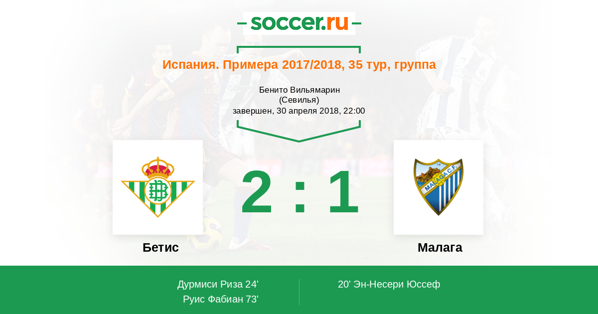 Испания. Примера 28.02.2017 Малага Логотип футбольный клуб Малага 1:2 Логотип футбольный клуб Бетис (Севилья) Бетис