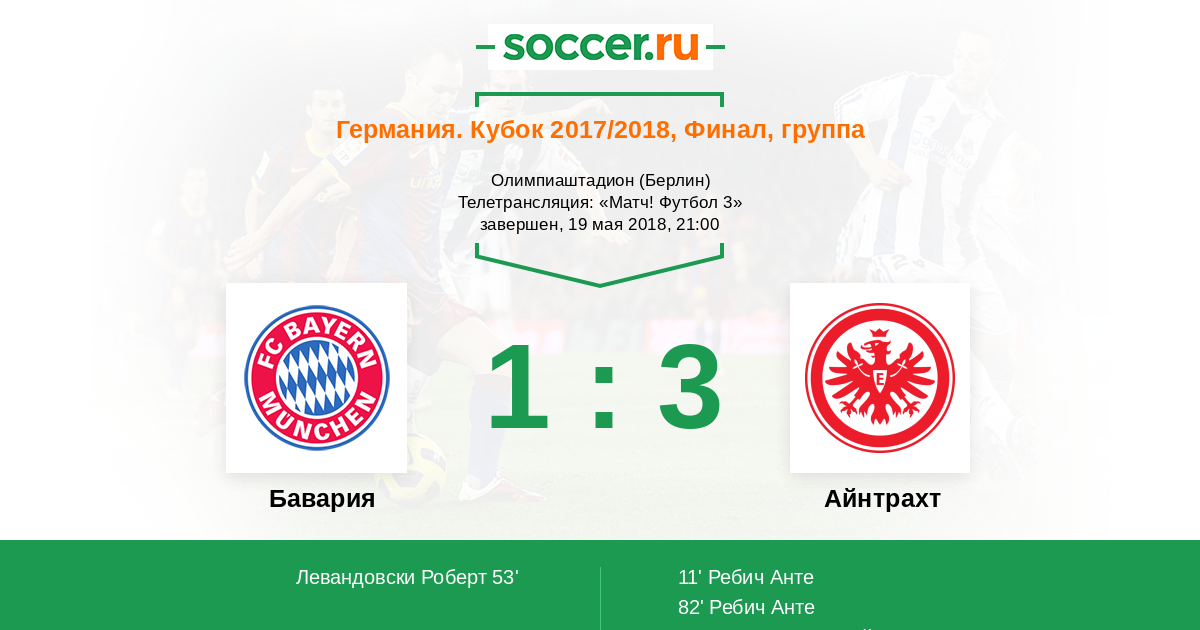 Германия. Бундеслига 28.04.2018 Бавария Логотип футбольный клуб Бавария (Мюнхен) 4:1 Логотип футбольный клуб Айнтрахт (Франкфурт) Айнтрахт