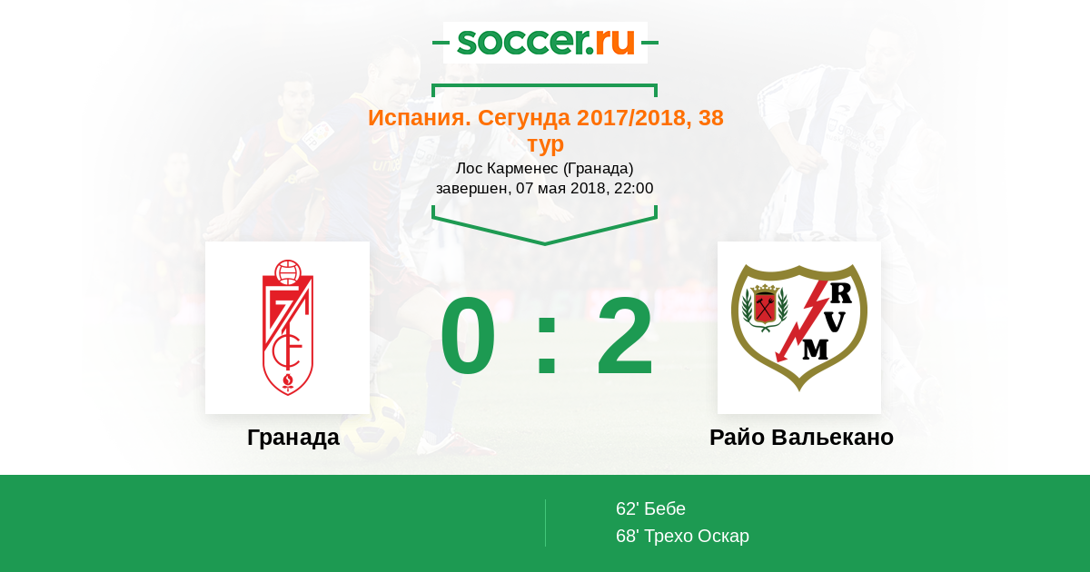 Испания. Примера 26.04.2014 Гранада Логотип футбольный клуб Гранада 0:3 Логотип футбольный клуб Райо Вальекано (Мадрид) Райо Вальекано