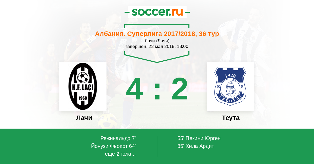 Албания. Суперлига 27.05.2017 Лачи Логотип футбольный клуб Лачи 2:1 Логотип футбольный клуб Теута (Дуррес) Теута