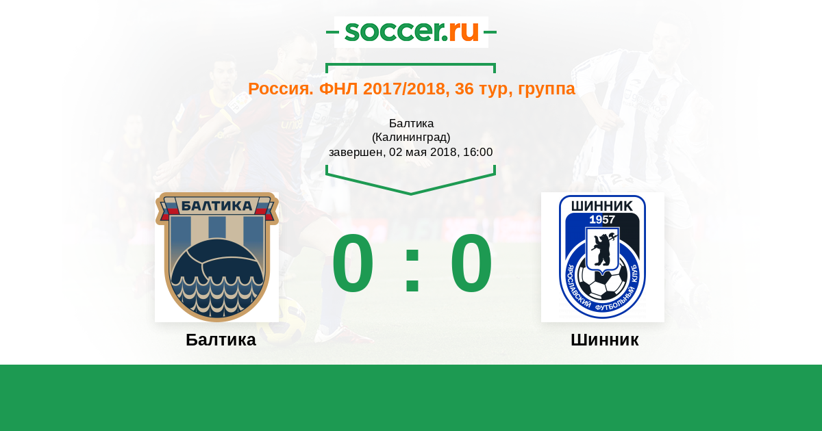 Россия. Первая лига 21.05.2016 Балтика Логотип футбольный клуб Балтика (Калининград) 0:3 Логотип футбольный клуб Шинник (Ярославль) Шинник
