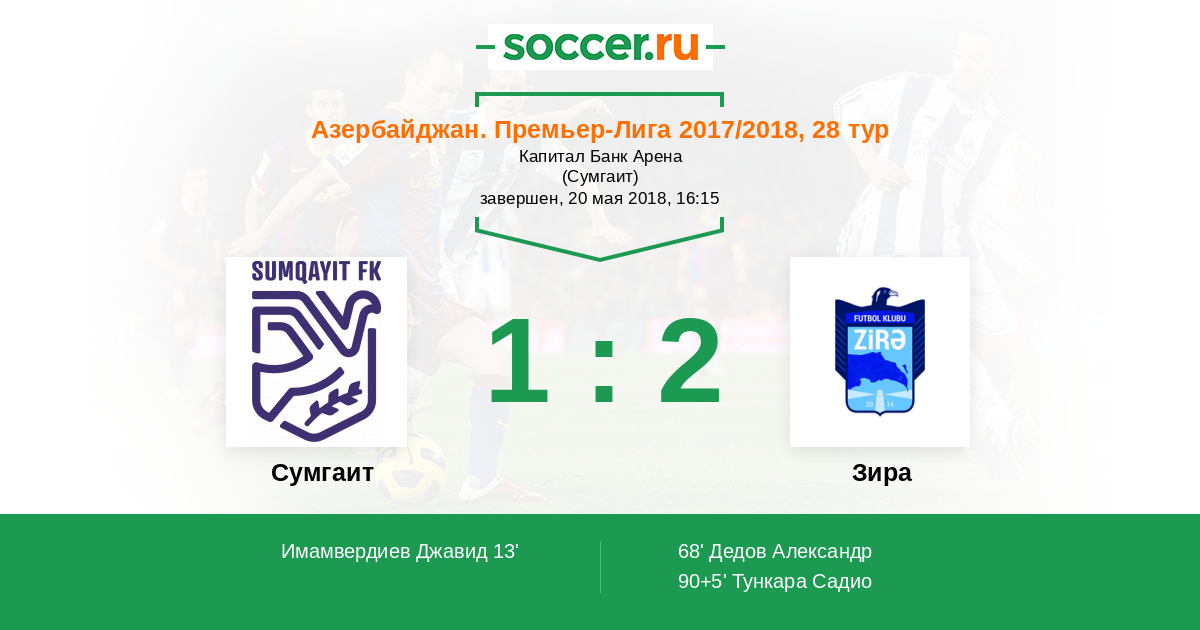 Азербайджан. Премьер-Лига 21.10.2017 Сумгаит Логотип футбольный клуб Сумгаит 2:1 Логотип футбольный клуб Зира Зира