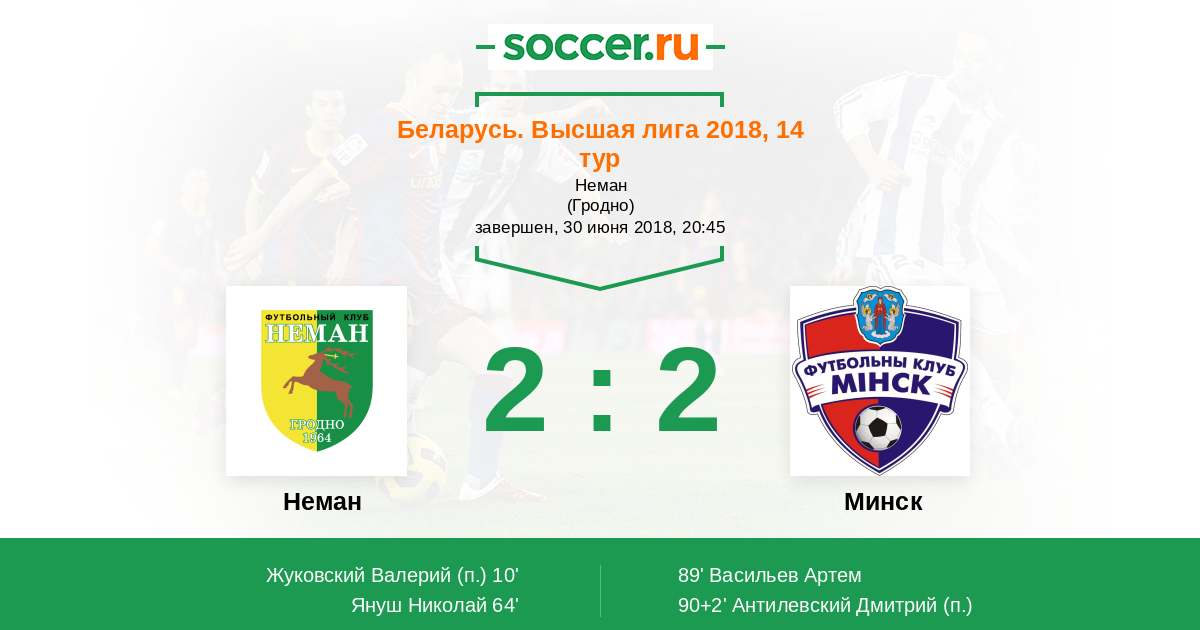 Беларусь. Высшая лига 20.07.2014 Минск Логотип футбольный клуб Минск 1:1 Логотип футбольный клуб Неман (Гродно) Неман