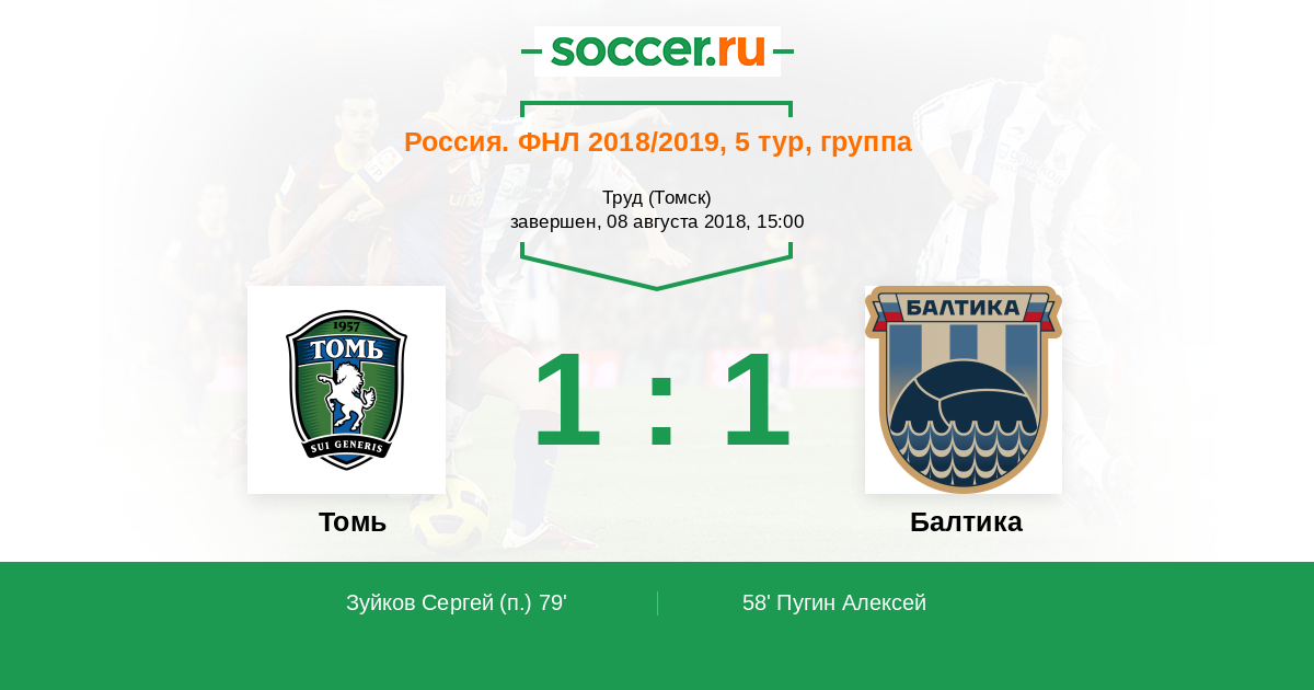 Россия. Первая лига 06.08.2012 Томь Логотип футбольный клуб Томь (Томск) 2:2 Логотип футбольный клуб Балтика (Калининград) Балтика
