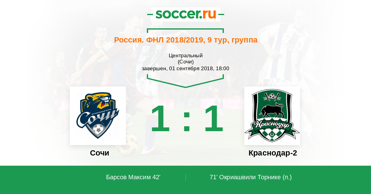 Россия. Вторая лига. Группа 3 07.09.2014 Краснодар-2 Логотип футбольный клуб Краснодар-2 3:1 Логотип футбольный клуб Динамо СПб (Сочи) Динамо СПб