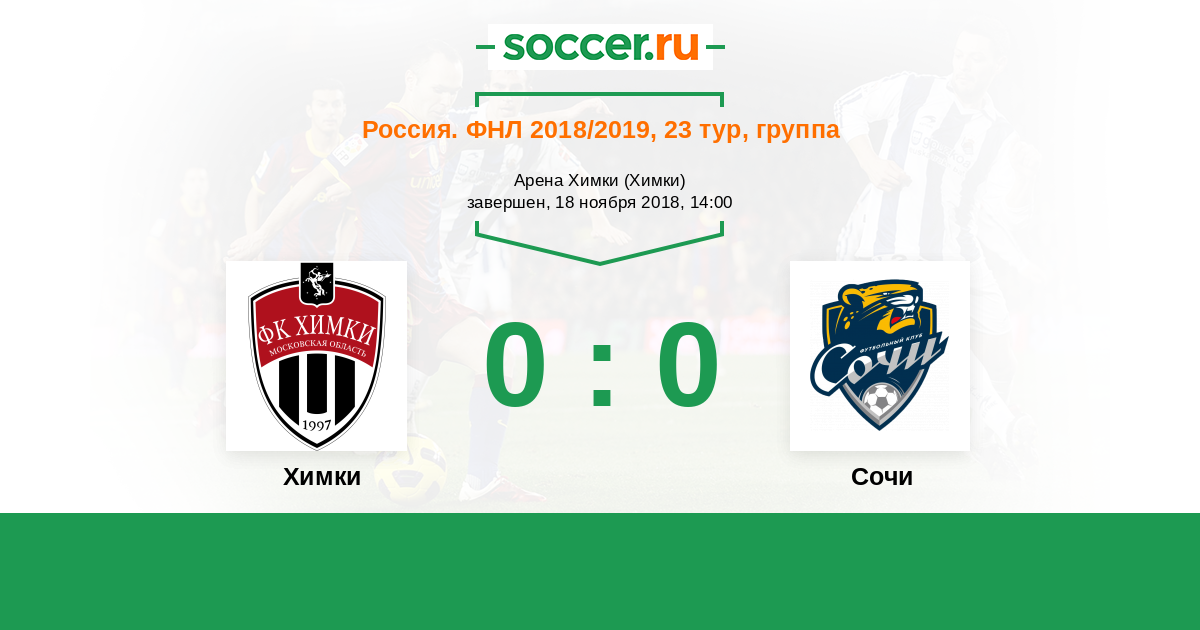 Россия. Первая лига 29.07.2018 Сочи Логотип футбольный клуб Сочи 3:2 Логотип футбольный клуб Химки Химки