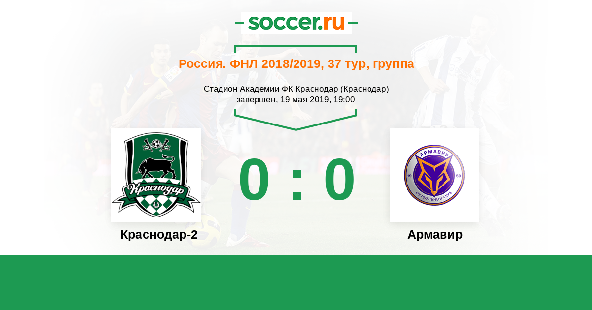 Россия. Вторая лига. Группа 1 27.05.2018 Краснодар-2 Логотип футбольный клуб Краснодар-2 0:3 Логотип футбольный клуб Армавир Армавир