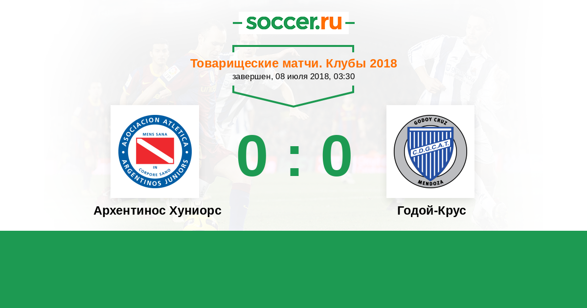 Аргентина. Суперлига 18.08.2018 Архентинос Хуниорс Логотип футбольный клуб Архентинос Хуниорс (Буэнос-Айрес) 0:0 Логотип футбольный клуб Годой-Крус Годой-Крус