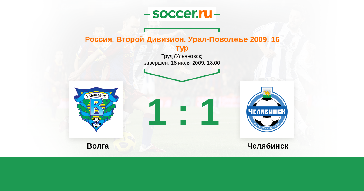 Россия. Вторая лига. Группа 4 23.09.2014 Волга Логотип футбольный клуб Волга (Ульяновск) 1:1 Логотип футбольный клуб Челябинск Челябинск