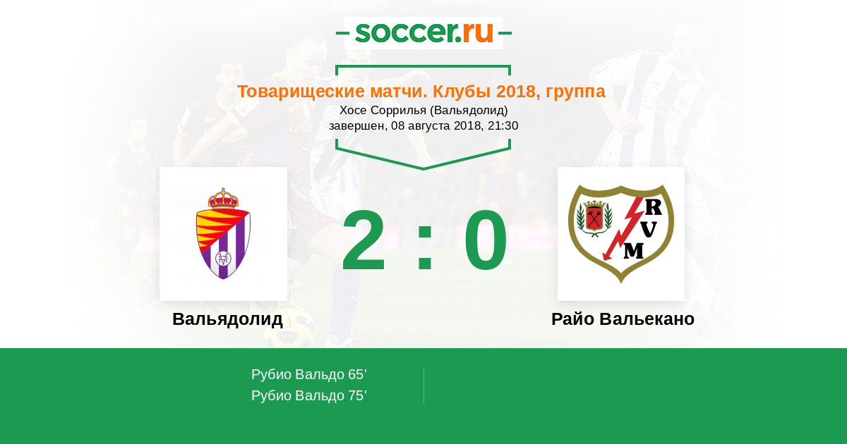 Товарищеские матчи. Клубы 16.08.2014 Вальядолид Логотип футбольный клуб Вальядолид 2:1 Логотип футбольный клуб Райо Вальекано (Мадрид) Райо Вальекано